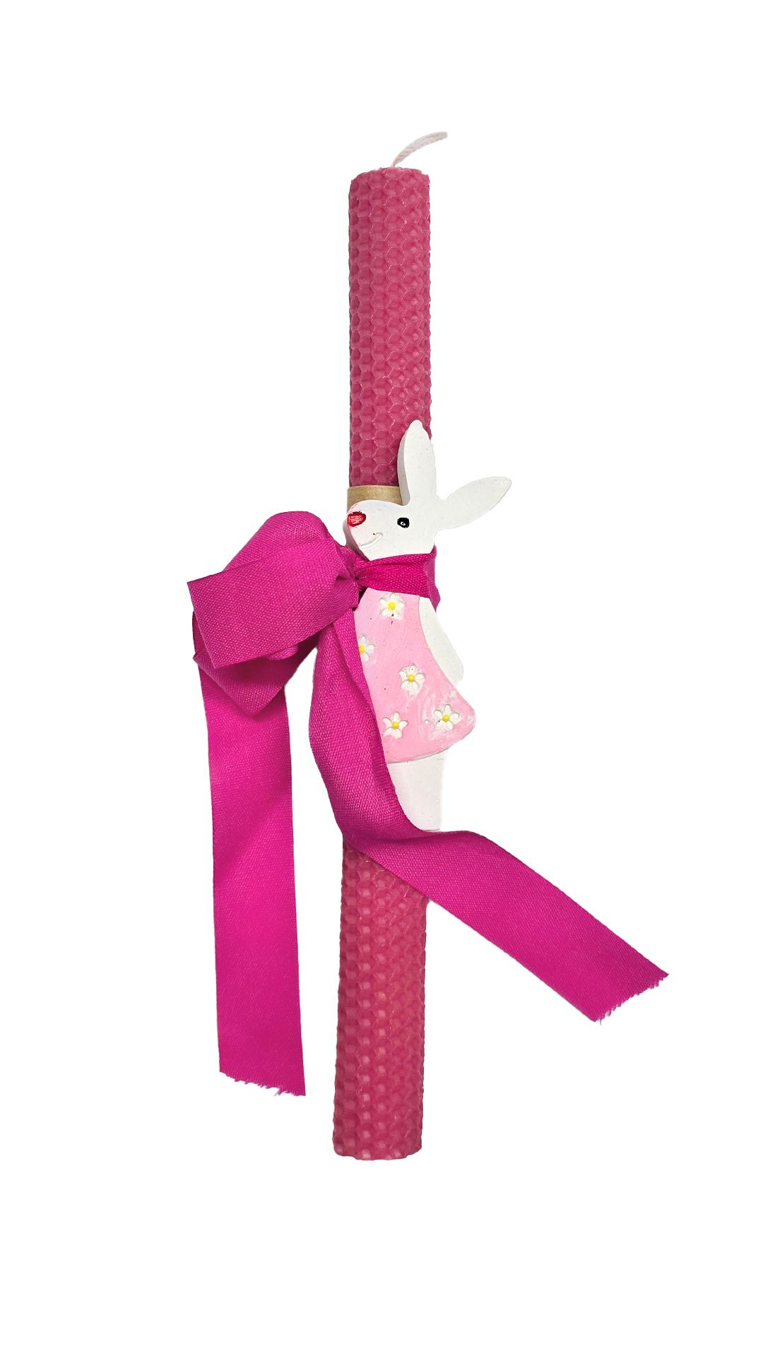 Φούξια λαμπάδα 30 εκ. από φυσικό μελισσοκέρι με πορσελάνινο αρωματικό λαγό. Ιδανική για ένα παιχνιδιάρικο και κομψό πασχαλινό δώρο.